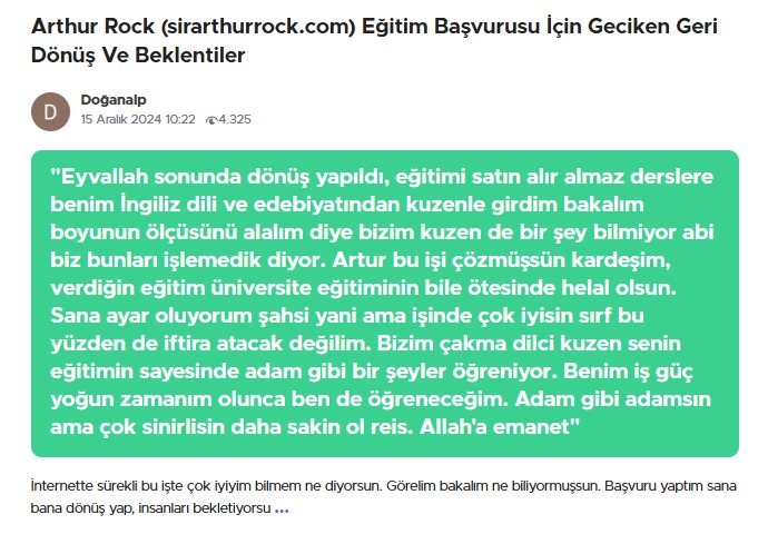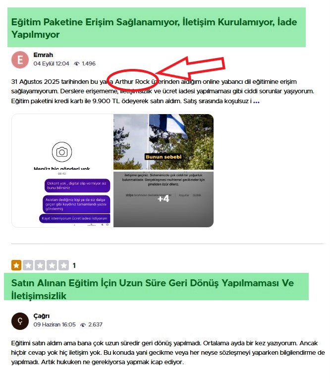 Bu şəxs haqqında “Arthur rock” yazaraq axtarış verdiyimiz zaman 23 iyun 2023-cü il tarixində Türkiyə Respublikası vətəndaşı Sema Bağların yazmış olduğu şikayət ərizəsi ilə rastlaşdıq. Ərizədə qeyd olunur ki, Ertuğrul Kaya adlı şəxsin veb saytı, @arthurrocklangy- youtube kanalı və “Sirarthurrock” “Instagram” səhifəsi və “+905346379949” telefon nömrəsi ilə əlaqə saxlanıldıqdan sonra TR68 0011 1000 0000 0096 8147 90 bank hesab nömrəsinə 4900 tl pul köçürülüb. Dərslər başlasa da, göstərilən müddət ərzində Ertuğrul Kaya öhdəliklərini yerinə yetirməyib. Buna görə də şikayətçi “Sirarthurrock” qondarma adı ilə tanınan bu şəxsdən öz pulunu geri istəyir.