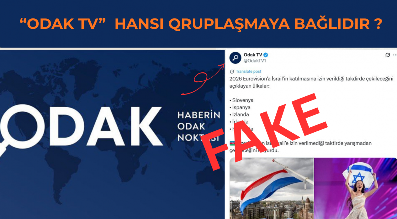 1. Əvvəlcə onu qeyd edək ki, sözügedən paylaşımla bağlı “X” istifadəçiləri etiraz bildiriləndə (Azərbaycanın bu cür rəsmi açıqlaması olmayıb) və xəbərin qaynağının göstərilməsini tələb edəndə “Odak TV” “İnside Eurovision” adlı “parodiya hesabı”nı mənbə olaraq göstərib.
