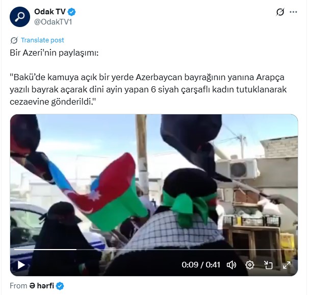 Mənbə kimi təqdim olunan isə "Ə hərfi" adlı adi bir istifadəçinin “X” hesabıdır. "Ə hərfi" profilinin bu paylaşımla verdiyi mesaj əslində “Odak TV”-nin arzuladığı durumdan tam fərqlənir: