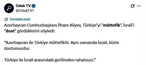 Göründüyü kimi, Azərbaycanla bağlı əsassız xəbər yayanlardan biri olan “Odak TV” adlı “X” hesabı qonşu dövlətlərdən birinə yaxın radikal qüvvələr tərəfindən idarə olunur və bu qüvvələr hər vəchlə çalışırlar ki, Türkiyədə Azərbaycan əleyhinə təbliğat aparsınlar.