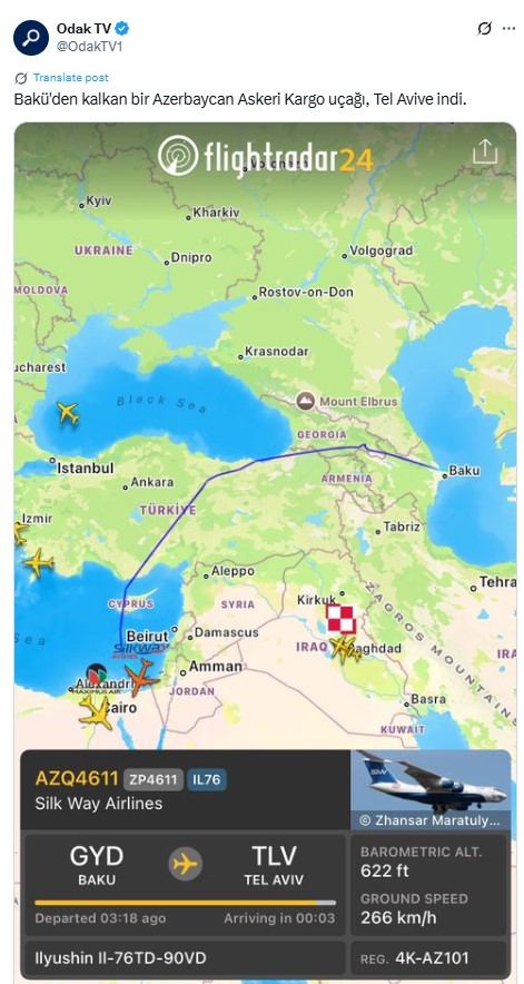 2. “Odak TV”-nin 14 iyul 2025-ci il tarixində (12 günlük İsrail-İran müharibəsi zamanı) Bakıdan havalanan bir hərbi yük təyyarəsinin Tel-Əvivə endi iddiası fake-xəbər, dezinformasiyadır.