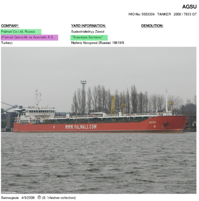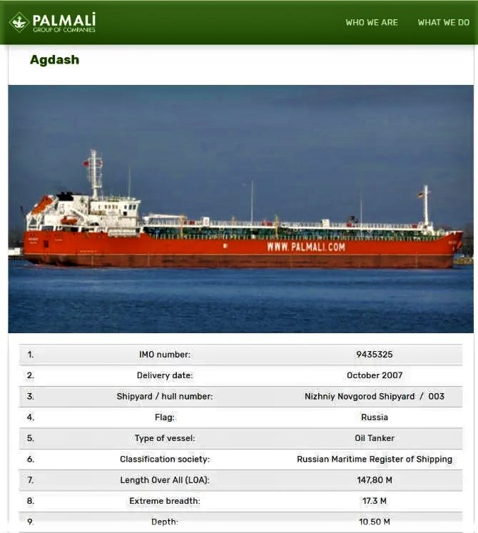 Yeri gəlmişkən qeyd edək ki, “Palmali Shipping”ə məxsus “Agsu” tankeri Rusiya-Ukrayna müharibəsi başlamazdan əvvəl (“Palmali Co Ltd”nin sifarişi ilə Rusiyanın Nijni-Novqoroddakı “Krasnoye Sormovo” zavonunda inşa edilib) Rusiya bayrağı ilə hərəkət edərək gizli malların tədarükünü təmin edib.