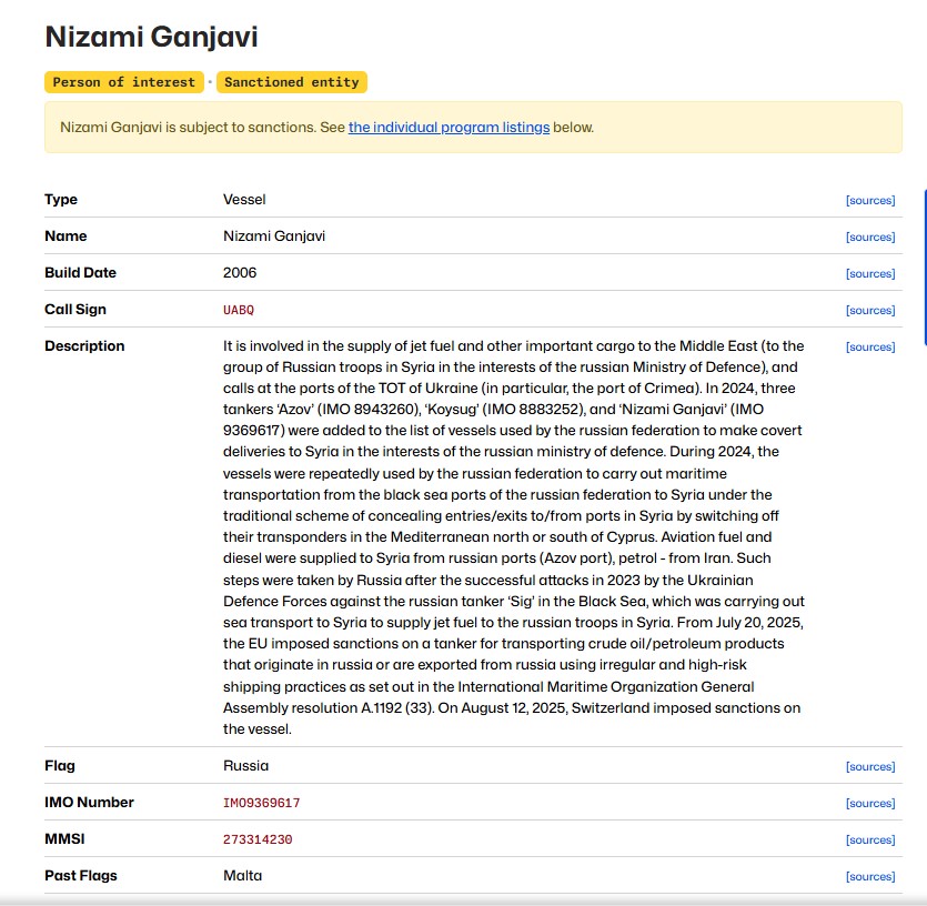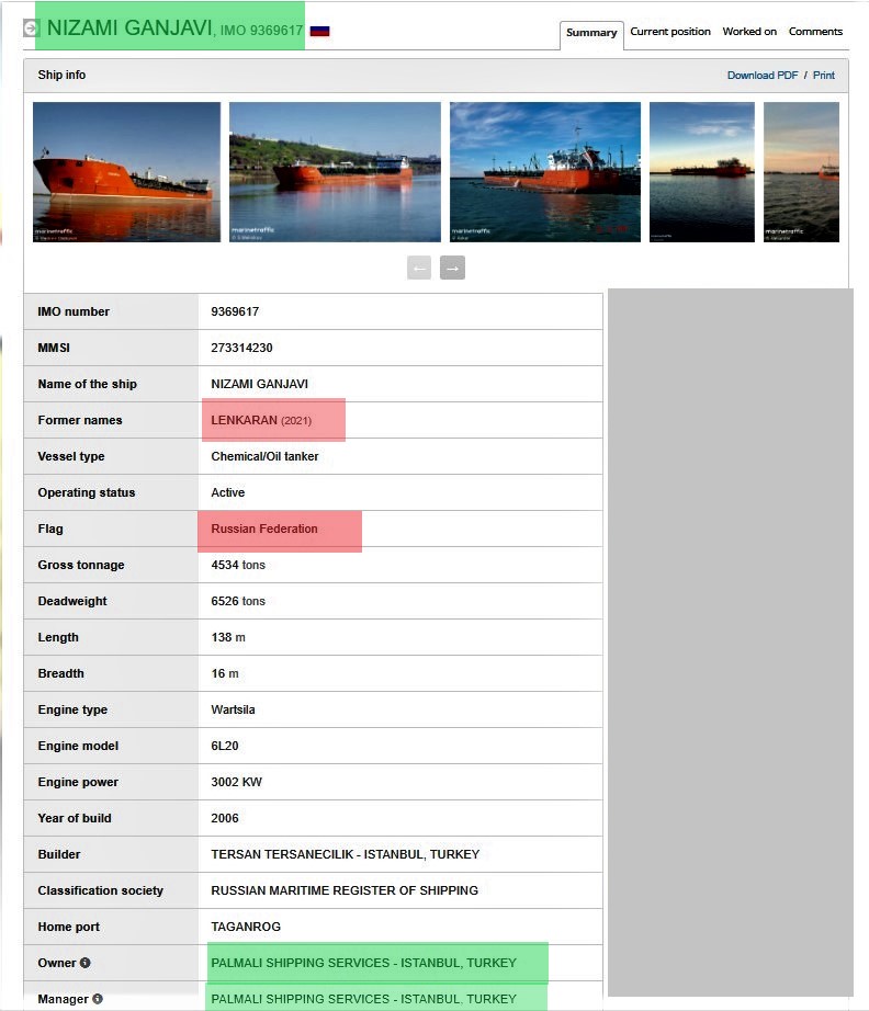 Belə ki, ismi sanksiyaya məruz qalan gəmi və tankerlər siyahısında hallanan “Nizami Gəncəvi” adlı tankerin Türkiyədə qeydiyyatdan keçən “Palmali Holdinq”ə məxsus olması və Rusiya bayrağı altında həmin ölkənin dəniz donanmasının üzvü kimi daşımalarda iştirak etdiyi məlum oldu.