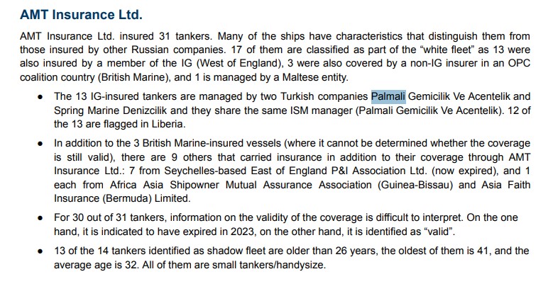 Bu təqdim etdiyimiz faktlar və beynəlxalq təşkilatların hesabat sənədləri birmənalı olaraq “Palmali” şirkətinin və onun şefinin qaranlıq və dolaşıq işlərdə iştirakını, dəniz nəqliyyatında qeyri-şəffaf biznes fəaliyyətini, ələlxüsus da Qərbin sanksiyalarına məruz qalmış Rusiyanın neft-qaz və digər mallarının qaçaqmalçılıq, “kölgə donanması” sxemi ilə daşıdığını təsdiqləyən materialların bir qismidir.