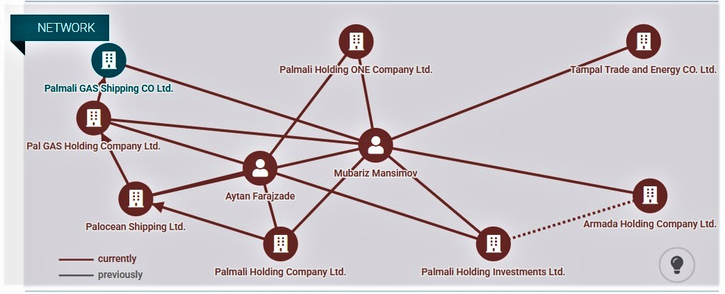 İddialara görə, M.Mənsimovun Rusiya xam neftini və neft məhsullarının Kerç boğazı ərazisində, Qara və Azov dənizlərindən “bunkerinq” (təchizat) sxemi ilə daşıyan dağıstanlı “qara donanma” ailəsi də sıx bağlılığı var. “Palmali”nin daşıdığı Rusiya neftinin eyni liman və boğazlarla hərəkət etməsi, eyni “bunkerinq” üzrə gizlənməsi də digər oxşarlıqlar həmin tanker qruplarının ortaq maraqlarına işarə edir. Məsələn, Rusiyanın “SBC Dolina” MMC-yə (VÖEN: 7714420564) məxsus və təsisçisi “LSCapital MMC” (VÖEN: 7703426420) şirkətinin sahibi olan Aslan Camaldinoviç sanksiyaya məruz qalmış tankerlərin yol xəritəsini müəyyən edənlərdən biri kimi tanınır.