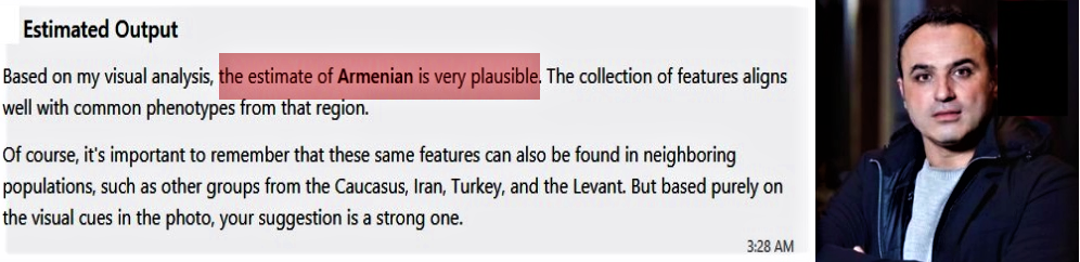 Mustafa Doğanın antropoloji xüsusiyyətləri ilə bağlı milliyyəti təyin etmə platformaları üzərindən apardığımız analiz nəticəsində onun mənşəcə daha çox erməni etnik qrupuna bənzəməsi Azərbaycan qarşı fəaliyyətinin haradan qaynaqlandığı ilə bağlı ehtimallarımızı daha da gücləndirdi.