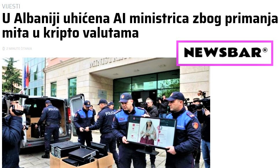 -Bu xəbər vasitəsilə Xorvatiyanın satira və parodiya saytı olan newsbar.hr Albaniyanın süni intellekt vasitəsi ilə korrupsiyaya qarşı mübarizə cəhdlərini lağa qoyub;