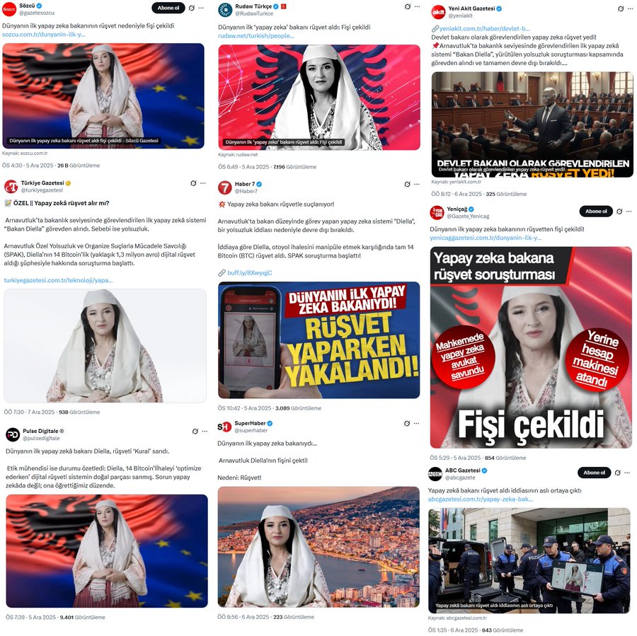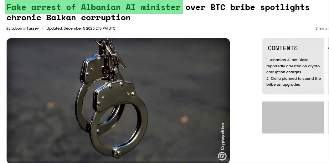 Bəlli olub ki, bəzi KİV-lərin həqiqətən olubmuş kimi təqdim etdiyi "dünyanın ilk süni intellekt naziri Diellanın rüşvət alması və buna görə də offlayn rejimə keçirilməsi" ilə bağlı xəbər Xorvatiyanın satira və parodiya saytı olan "newsbar.hr" adlı portalın uydurmasıdır.