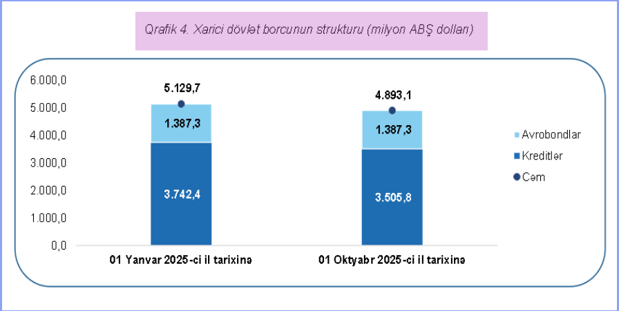 Bir neçə ay əvvəl təsdiq edilmiş “2026-2029-cu illər üzrə Ortamüddətli Xərclər Çərçivəsi”ndə də, xarici dövlət borcunun müəyyən edilmiş hədəf göstəricisini - 10 milyard dolları üstələməməsi nəzərdə tutulub.