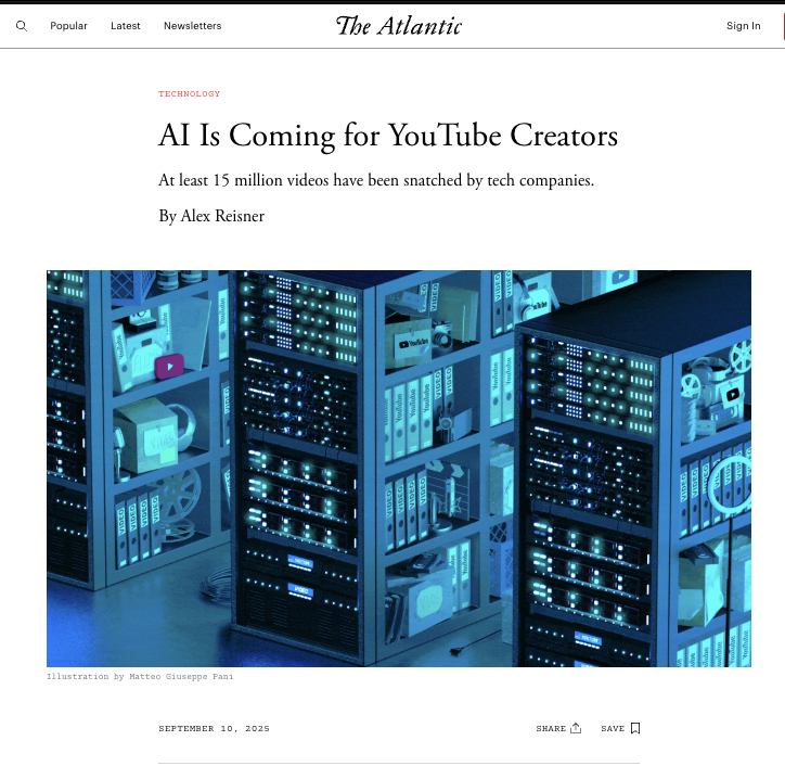 Süni intellekt texnologiyalarının inkişaf etməsi rəqəmsal məzmunların icazəsiz istifadəsi ilə bağlı yeni suallar doğurub. Belə ki, artıq video platformalarındakı məzmunların süni intellekt modellərinin təlimi üçün hansı dərəcədə və hansı icazələrlə istifadə ediləcəyi ciddi mənada müzakirə mövzusuna çevrilib. ABŞ-da yerləşən "The Atlantic" jurnalında dərc olunan bir araşdırma, böyük texnologiya şirkətlərinin süni intellekt təlimi üçün icazəsiz milyonlarla “Youtube” videosundan istifadə etdiyini ortaya qoyub.