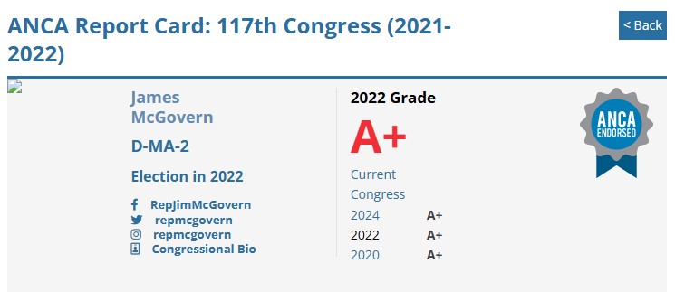 Terrorçu rejimə yardım: Makqovern Qaydalar Komitəsinin sədri kimi ANCA-nın dəstəklədiyi, Dağlıq Qarabağda mövcud olmuş terrorçu rejim üçün 1,4 milyon dollarlıq mina təmizləmə yardımını nəzərdə tutan düzəlişin Palata tərəfindən müzakirəsinə səs verib. ANCA bu addımı "arsaxa dəstək" kimi dəyərləndirib.