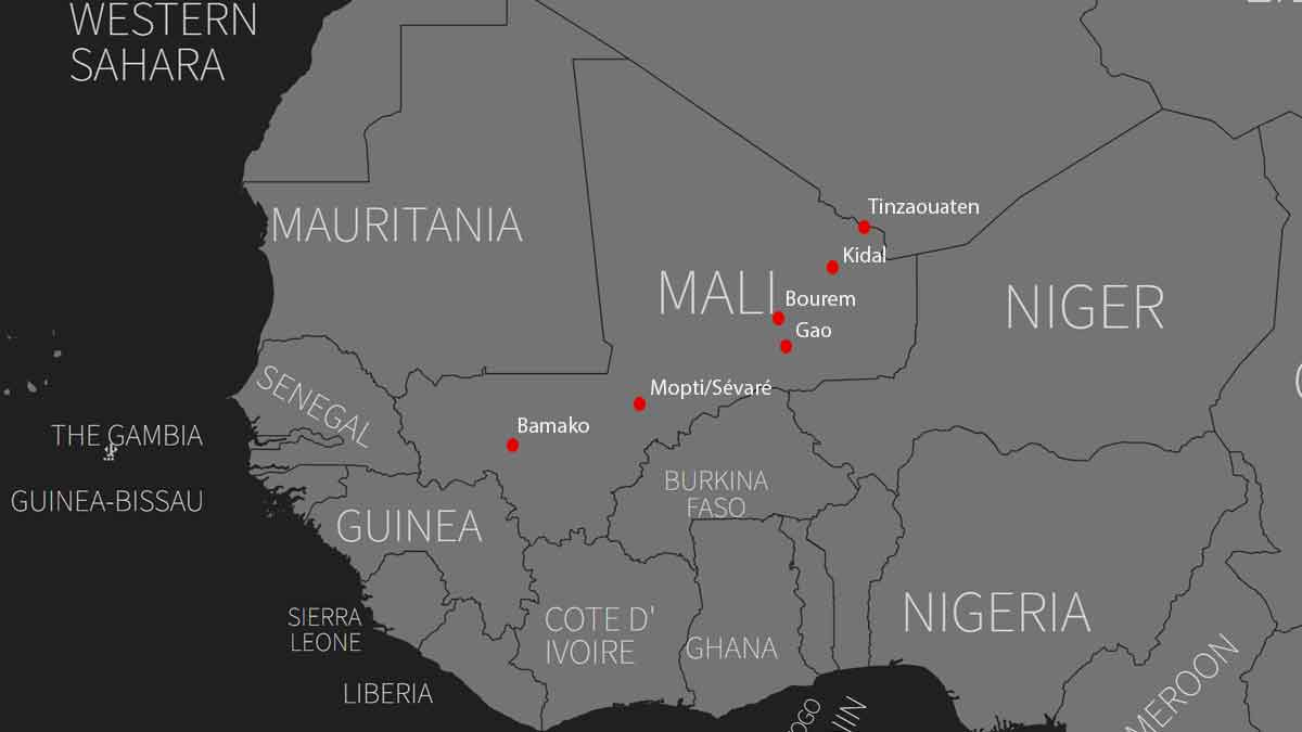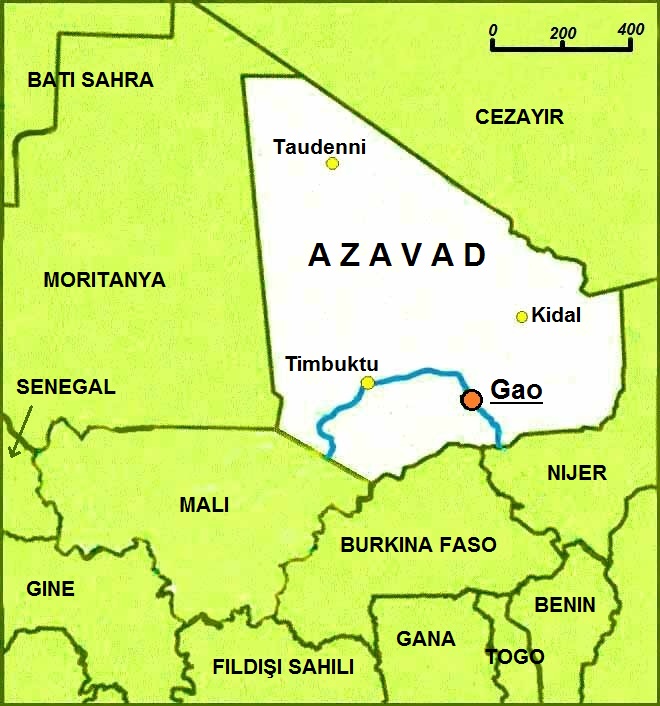 - Kidal — FLA'nın (Azawad Liberation Front) gün sonunda tam nəzarəti ələ keçirdiyi şimal şəhəri;