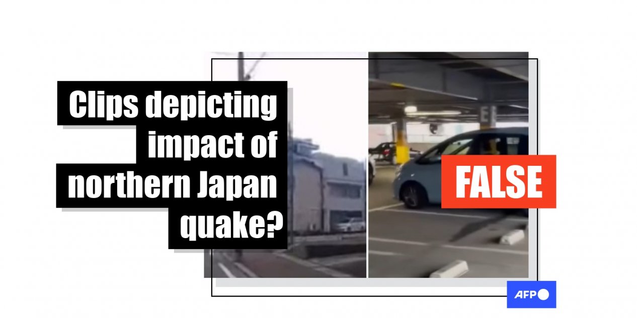 After Japan's northern coast was rocked by a magnitude 7.5 quake on December 8, videos purportedly showing the impact of the tremor were falsely shared on social media. The clips in fact show a street and a car park shaken by another powerful quake that struck central Japan on New Year's Day in 2024.