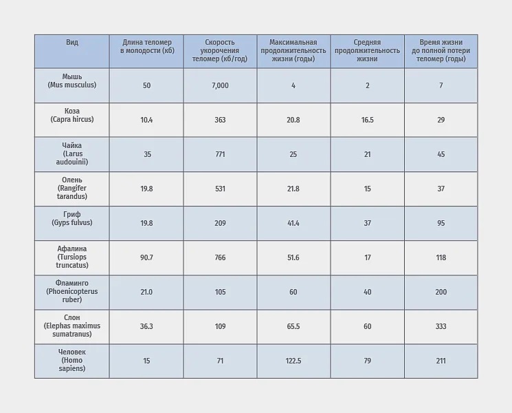 Наконец, недавние исследования показывают, что прогнозировать продолжительность жизни на основании длины теломер не вполне корректно. В 2019 году испанские учёные проанализировали длину теломер разных позвоночных: дельфина рода афалина, козы, оленя, фламинго, грифа, чайки, слона, мыши и человека.