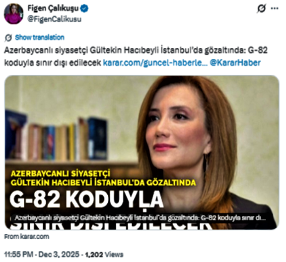 Yetmedi, bir gün sonraysa Gergeroğlu Gültekin Hacıbeyli’nin İstanbul’da gözaltına alınıp G-82 koduyla sınır dışı sürecine alınması TBMM gündemine taşıdı.