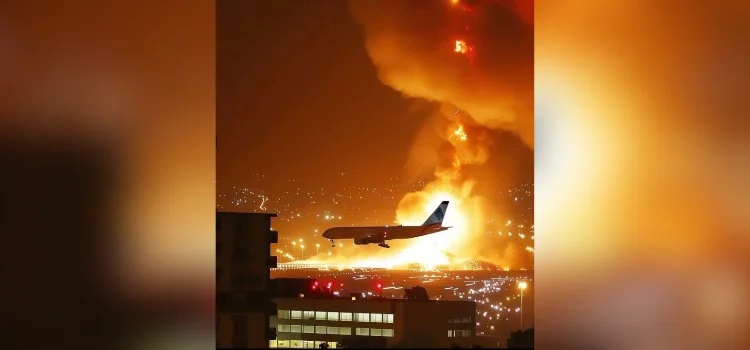 2025'te uçakların Beyrut havalimanına inişini gösteren yapay zeka üretimi görseller,