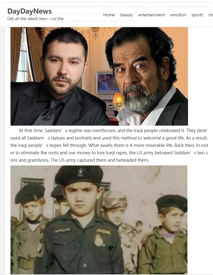 Uzun müddətdir Azərbaycan mediasında, hətta nüfuzlu media orqanlarında Səddam Hüseynin 14 yaşlı nəvəsinin qəhrəmanlığı, onun 400 xüsusi təyinatlı Amerika əsgərlərinə qarşı 6 saat döyüşməsi və sonda şəhid olması haqda məlumatlar yayılır. Əksər məlumatlar bu fotolarla verilir.