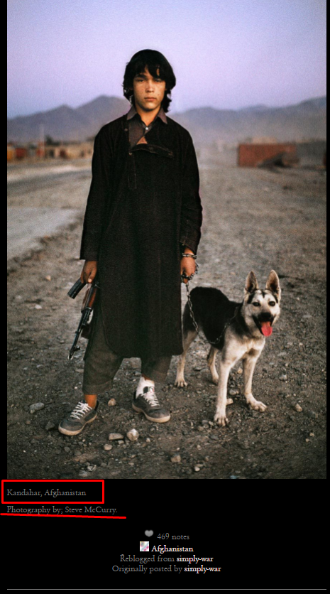 Bu fotoda görünən oğlanın Mustafa Uday Hüseynə heç bir aidiyyatı yoxdur. Bu foto, Əfqanıstanın Qəndəhar şəhərində çəkilib və fotonun müəllifi Stiv McCurrydir.