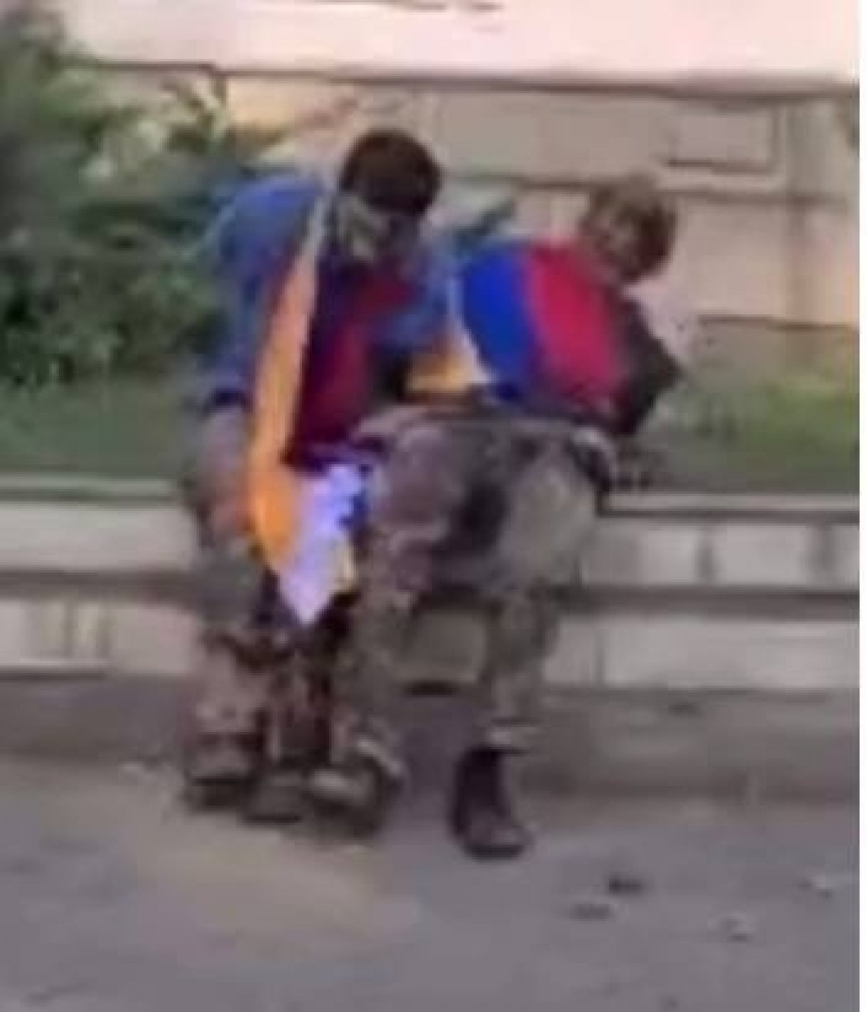 Adətən, müharibələrdə edam olunanların gözləri qara lentlə bağlanır. Amma bu edam səhnəsində rast gəlinən “bayraqla bürünmə” edamı doğrudan da çox qəribə və ssenari baxımdan çox gülməlidir. Sanki bu videonu hazırlayanlar göstərmək istəyirlər ki, gələcəkdə haradasa nümayiş olunarsa "bunlar ermənidir ha, başqa millətdən deyil, səhv salmayın" deyə bilsinlər.