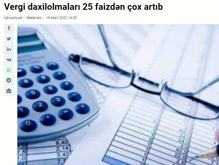 2022-ci ilin yanvar-fevral aylarında dövlət büdcəsinin gəlirləri 4 milyard 626,1 milyon manat, xərcləri 2 milyard 685,1 milyon manat təşkil edib. Gəlirlərin əsas fundamental fiskal mənbəyi vergi və gömrük daxilolmalarıdır. Belə ki, 4,6 milyard manatın təxminən 60 faizini Dövlət Vergi Xidməti və Dövlət Gömrük Komitəsi təmin edib. Cari ilin ötən iki ayında vergi daxilolmaları 25,2 faiz artaraq 1 milyard 830,4 milyon manat təşkil edib və proqnoz 108,7 faiz səviyyəsində icra olunub. Vergi daxilolmalarının 78 faizi, yəni 1 milyard 398,8 milyon manatı qeyri-neft-qaz sektorunun payına düşüb. Neftin payı cəmi 22 faiz təşkil edib. (Mənbə)