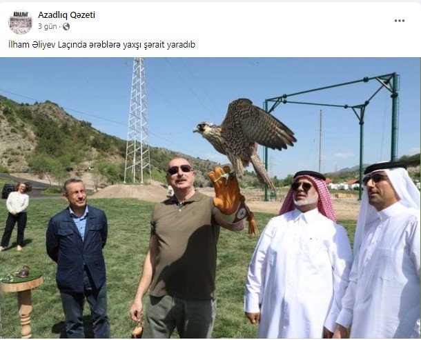 Həmin hadisə ilə bağlı silsilə rəsmi məlumatlar, foto, video-təqdimatlar mövcuddur və “ərəblərin” şahin quşlarını hansı məqsədlərlə Laçına apardıqlarını araşdırdıq. Hərçənd araşdırmağa da ehtiyac yoxdur, sadəcə müvafiq məlumatları bir az diqqətlə oxumaq yetərlidir.
