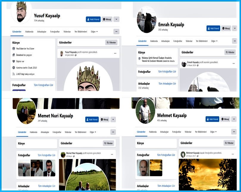 Yusuf Kayaalpın profili üzərindən apardığımız araşdırmalar zamanı bir məqam xüsusən diqqətimizi çəkdi. Bu şəxsin dostluğunda olan və onunla eyni soyadı daşıyan qohumları ya özləri haqqında heç bir məlumat vermir, ya da məmləkəti bölməsinə Siirtdən olduqlarını yazsalar da, profillərində Siirt haqqında nə bir şəkilə, nə də diqqətçəkən paylaşıma rast gəlmək olmur. Bu isə Türkiyədə son dövrlərə qədər kimliyini gizlədən ermənilərin özəlliyidir.