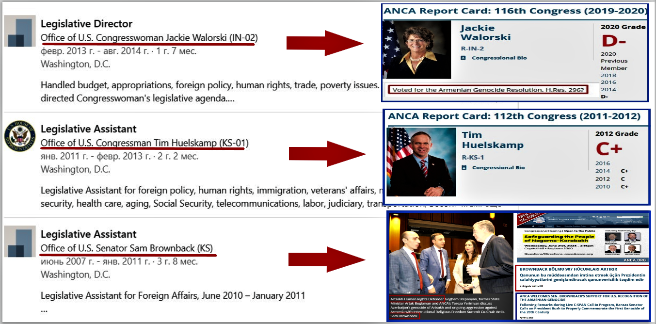 Boyacyanın çalışdığı hər üç konqresmen müxtəlif vaxtlarda “Amerika erməniləri Milli Komitəsi” (ANCA) tərəfindən qiymətləndirilib. Onlardan Ceki Valorski “erməni soyqırımının tanınması haqda “H.Res.296 Qətnaməsi”nə imza atıb, konqresmen Tim Hyulskampın fəaliyyəti “ANCA” tərəfindən ardıcıl olaraq 4 dəfə “məqbul” qiymətləndirilib. Senator Sem Braunbek isə qondarma qurumun təmsilçilərini qəbul edib, “erməni soyqırımı” qətnaməsinə səs verdiyi üçün “ANCA”-nın təşəkkürünü alıb və 2001-ci ildə “907-ci düzəliş”i dəstəkləyənlərdən biri olub.