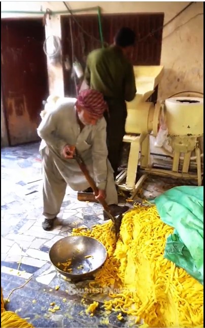 Öncə “Qrok”a "videodakı bu məhsul nədir?” sualını veririk. “Qrok” hesab edir ki, videodakı maddə əriştə, makaron və ya buna oxşar xəmir məhsuludur. O deyir ki, sarı rəng ədviyyat və ya qida boyası ilə bağlı ola bilər. Mədəni və regional əlaqələr qura bilən köməkçimiz iddia edir ki, video Cənubi Asiya regionundan ola bilər. “Qrok” həmçinin videonun gigiyenik olmayan istehsal şəraitinə görə tənqid olunduğu konteksti də çəkə bilir.