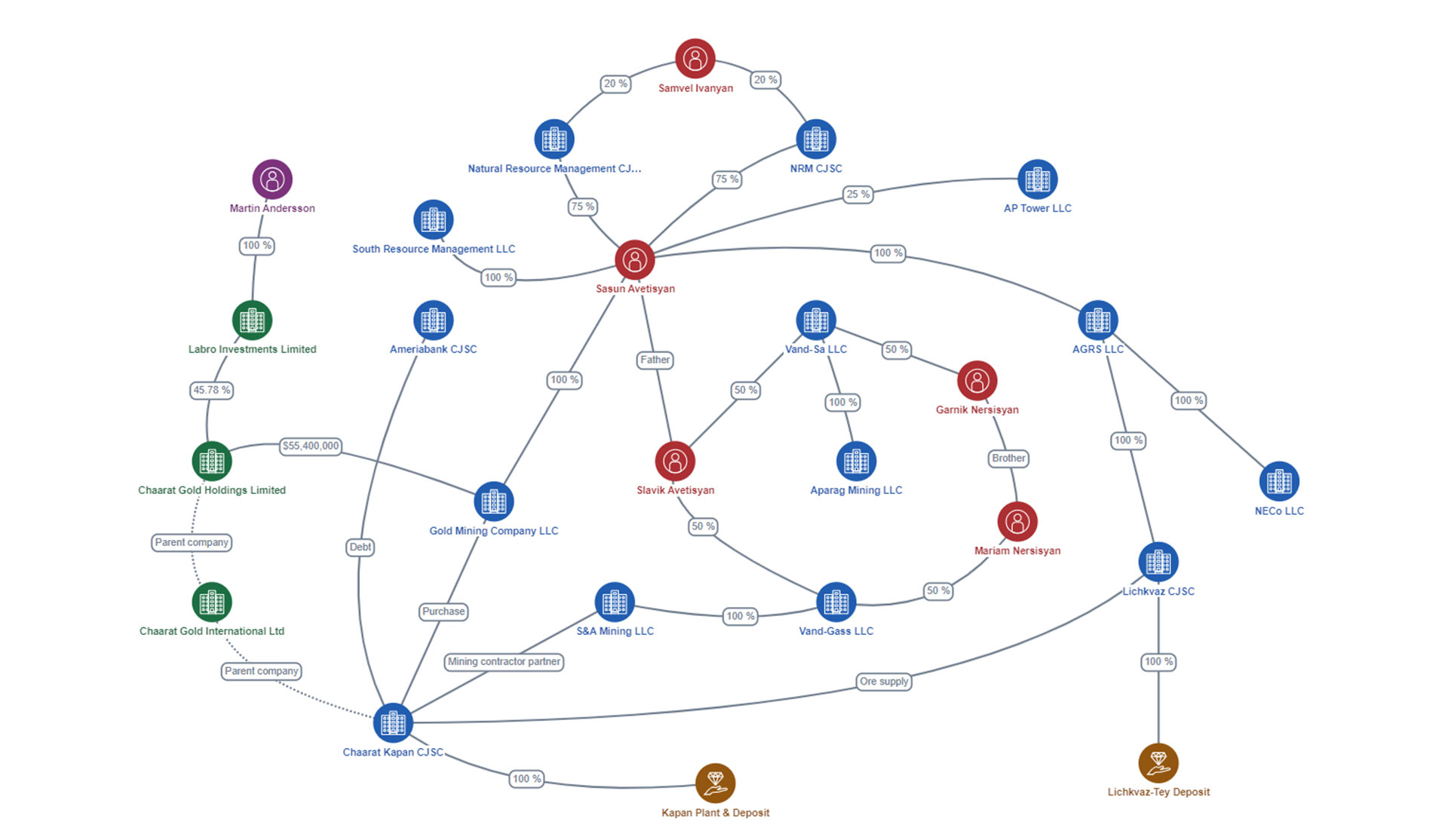 2023-cü ildə "Chaarat Kapan" öz paylarını 55,4 milyon dollara "Gold Mining Company" MMC-yə satıb. “Gold Mining Company” MMC həm də “Qafan” kombinatını emal üçün filizlə təmin edən "Liçkvaz-Tey" mədənini idarə edir. Qeyd edək ki, "Liçkvaz-Tey" qızıl mədəninin torpaq idarə etmək hüququ “Liçkvaz” QSC-yə məxsusdur. “Liçkvaz” QSC -nin sahibi Ermənistan vətəndaşı Sasun Avetisyan həm də 2 avqust 2023- cü ildə yaradılan “Gold Mining Company” MMC-nin sahibidir. Hər iki şirkət eyni ünvanda qeydiyyatdadır.