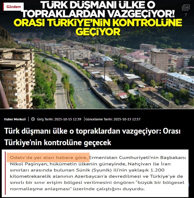 Halbuki, "Yeni Akit" qəzetində mövzu ilə bağlı "Türk düşməni ölkə o torpaqlardan imtina edir: Ora Türkiyənin nəzarətinə keçir" başlıqlı xəbər dərc olunub və bu xəbərdə də “OdaTV”-nin xəbərinə istinad edilib.