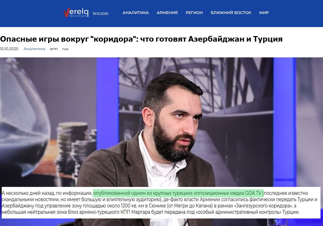 İki gün öncə Türkiyənin “OdaTV” saytında "Regional balansı dəyişdirəcək addım: Ermənistan həmin torpaqlardan imtina edir" başlıqlı xəbər dərc olunub.