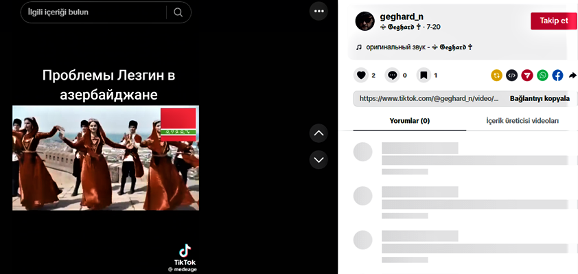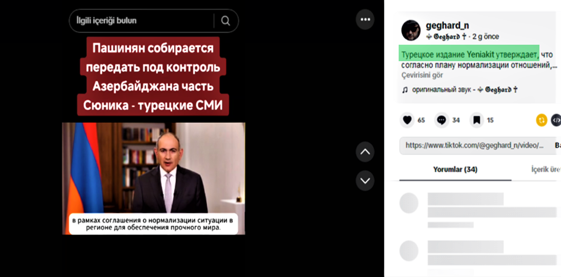 Mövzunu araşdırarkən, maraqlı bir məqama daha rast gəldik. Belə ki, mövzu ilə bağlı "Tiktok" platformasında "Geghard_n" adlı hesabda oxşar məzmunlu video paylaşılıb və “Yeni Akit”-ə istinad edilib.