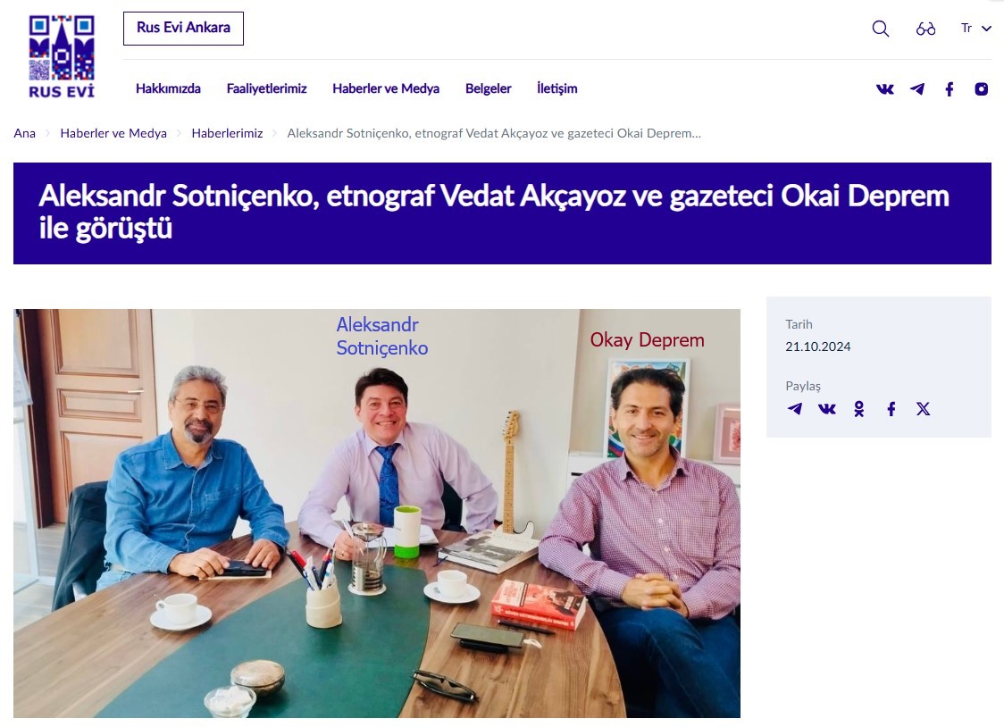 Bir məqama da diqqət yetirmək lazımdır ki, Okay Deprem tez–tez “Ankara Rus Evi”nin sədri Aleksandr Sotniçenko ilə görüşür və onunla yaxın dostluq münasibətləri olduğu deyilir.