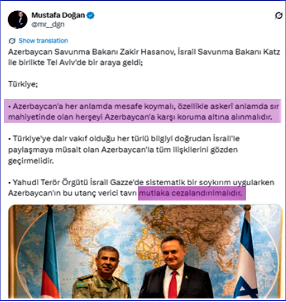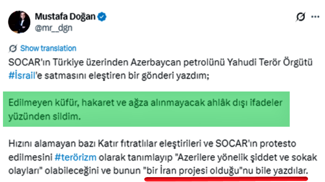 - Mustafa Doğanın Azərbaycanla bağlı qərəzi demək olar ki, yazdığı bütün yazı və statuslarda görünür;