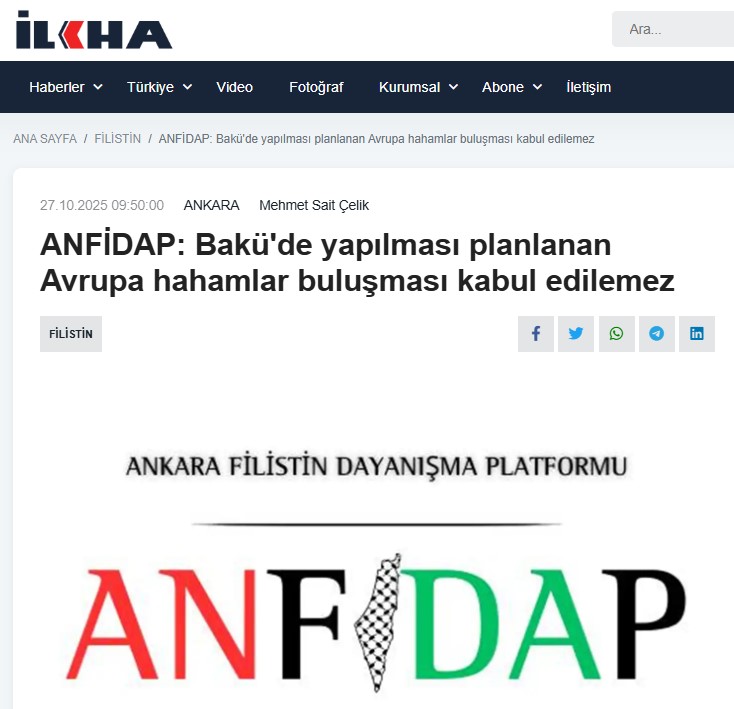 Hətta milli və etnik mənsubiyyəti bir kənara qoysaq belə, bu cümlənin özü Azərbaycanla qardaş və müttəfiq olan Türkiyədə iqtidaryönlü media qrupuna aid bir media qurumunda çalışan şəxs tərəfindən dilə gətirilir. Bu cümləni həm də ona görə xatırladırıq ki, ötən il “Fələstin məsələsi”ni əlində bayraq edib Azərbaycana hücum edən anti-Azərbaycan qüvvələri də aksiyalara belə bir şüarla çıxırdılar: "İki dövlət, tək xəyanət"