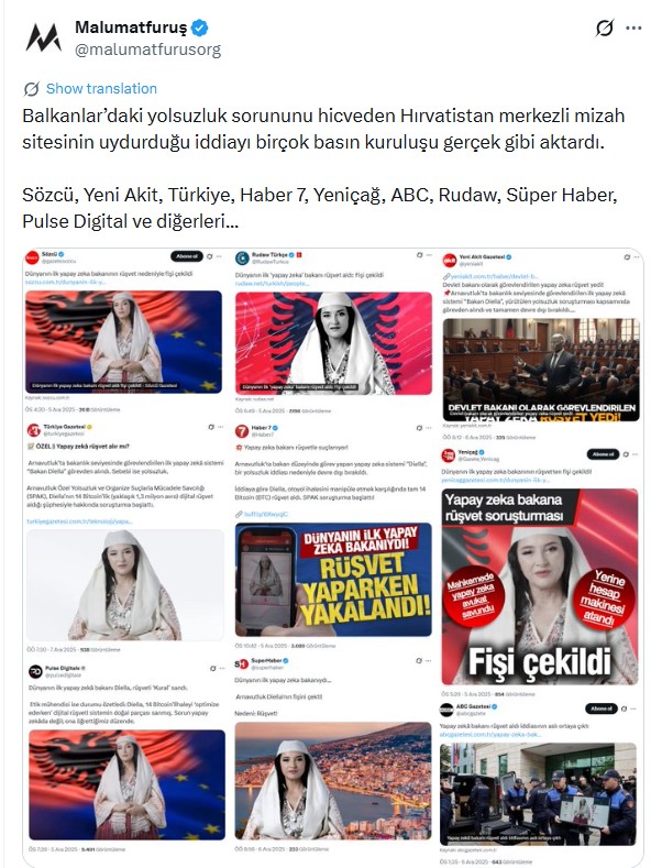 -Bu xəbər vasitəsilə Xorvatiyanın satira və parodiya saytı olan newsbar.hr Albaniyanın süni intellekt vasitəsi ilə korrupsiyaya qarşı mübarizə cəhdlərini lağa qoyub;