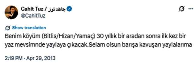 Əvvəlcə onu qeyd edək ki, Cahit Tuzun kimliyini araşdırarkən ziddiyyətli məqamlarla rastlaşdıq. C.Tuz özünün “X” hesabında bildirib ki, o, Bitlisin Hizan rayonunun Yamaçlı məhəlləsindəndir.