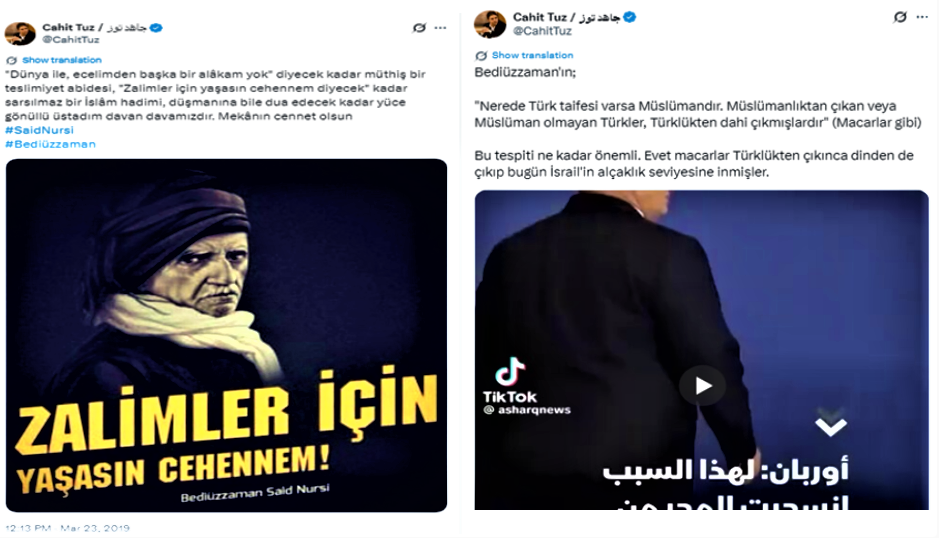 Bu şəxsin “Facebook” və “X” hesablarına nəzər saldığımız zaman görürük ki, o, “Nurçuluq” təriqətinin qatı tərəfdarı olduğunu gizlətmir, tez-tez Səid Nursidən sitatlar gətirir, hətta bəzən "Səid Nursi necə düz deyib müsəlman olmayan türk türk deyil" şəklində statuslar paylaşaraq, əslində Türkiyənin hazırda yürütdüyü siyasətə qarşı çıxır.