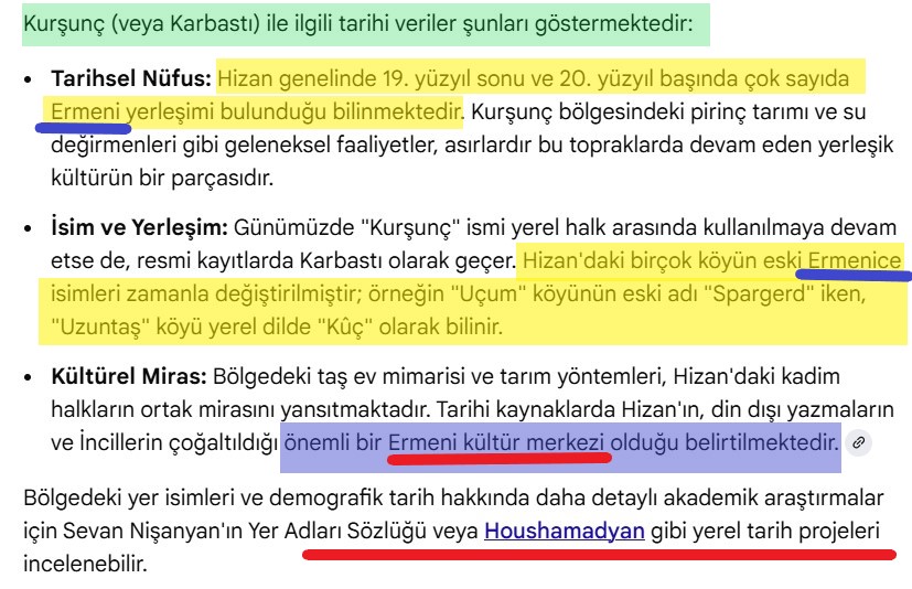Araşdırmalarımız zamanı müəyyənləşdirdik ki, bu məhəllə Bitlisin Hizan rayonunun Karbastı kəndinin bir məhəlləsidir. Kəndin əvvəlki adı isə 1928-ci ilə kimi Korsunç (ya da Kursinç) olub.