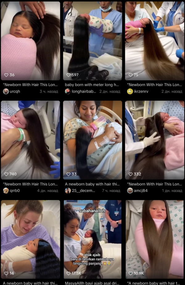 Yekunda bildirək ki, “uzunsaçlı yeni doğulmuş körpə” trendə çevriləndən sonra bu cür körpələri əks etdirən çoxlu sayda digər videolar yayılmaqdadır.