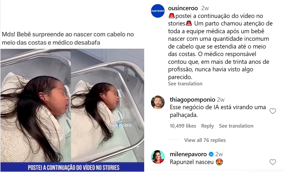 Bundan əlavə qeyd edək ki, uzunsaçlı körpənin doğulması ilə bağlı məlumatlar ənənəvi və tanınmış mediada deyil, əsasən ani mesaj tətbiqləri və sosial media vasitəsi ilə yayılır. Süni İntellek məhsullarını ayırd etməyin yollarından biri də budur.