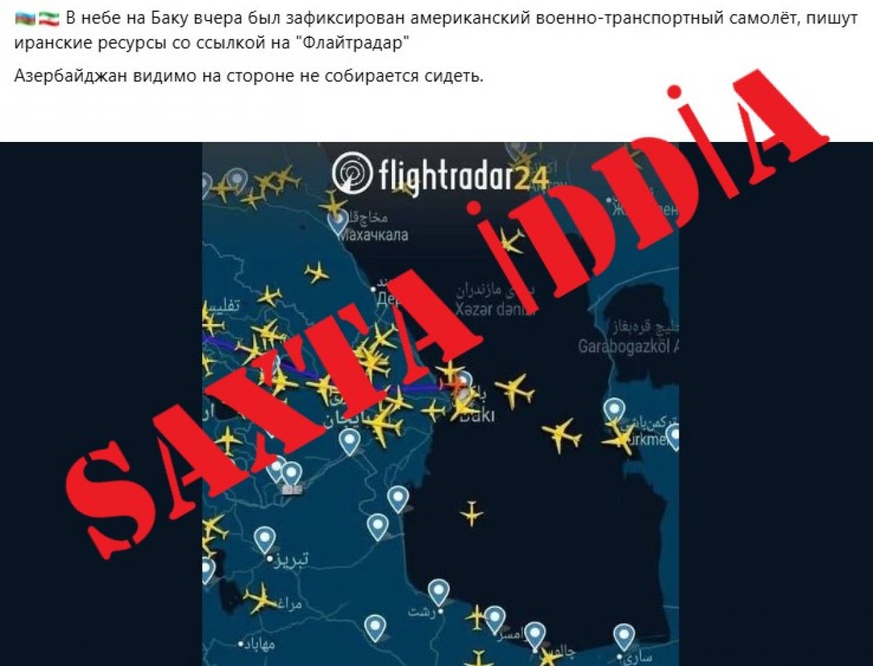 “Flightradar”-a istinadən yayılan iddia saxtadır