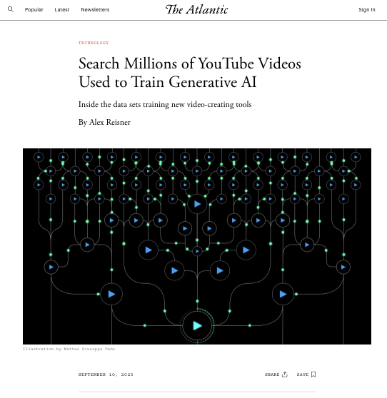 Süni intellekt texnologiyalarının inkişaf etməsi rəqəmsal məzmunların icazəsiz istifadəsi ilə bağlı yeni suallar doğurub. Belə ki, artıq video platformalarındakı məzmunların süni intellekt modellərinin təlimi üçün hansı dərəcədə və hansı icazələrlə istifadə ediləcəyi ciddi mənada müzakirə mövzusuna çevrilib. ABŞ-da yerləşən "The Atlantic" jurnalında dərc olunan bir araşdırma, böyük texnologiya şirkətlərinin süni intellekt təlimi üçün icazəsiz milyonlarla “Youtube” videosundan istifadə etdiyini ortaya qoyub.