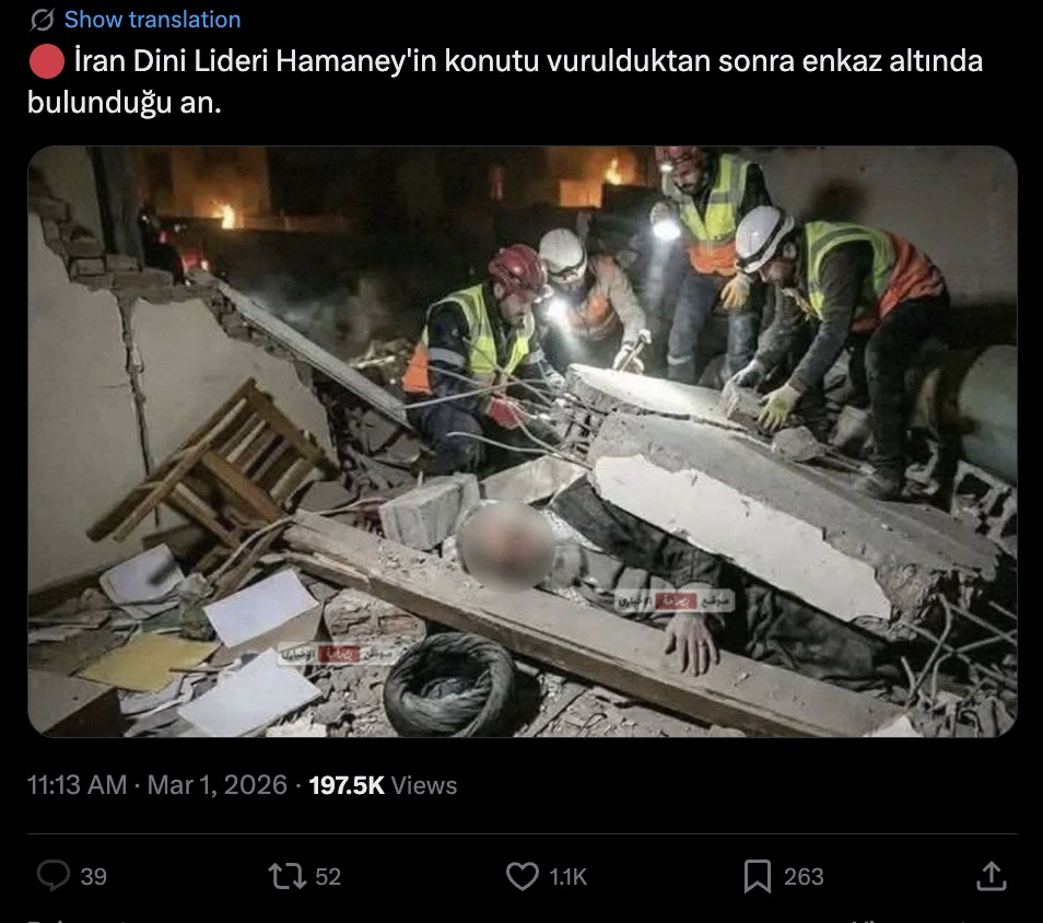 Kölgələrdəki uyğunsuzluqlar, görüntü teksturasının hamarlığı, xilasedicilərin baxış istiqamətləri fotonun Süni İntellektlə hazırladığını iddia etməyə əsas verir. Bundan əlavə, xilasedicilərin uniformaları da İran xilasedicilərinin formalarına uyğun deyil.