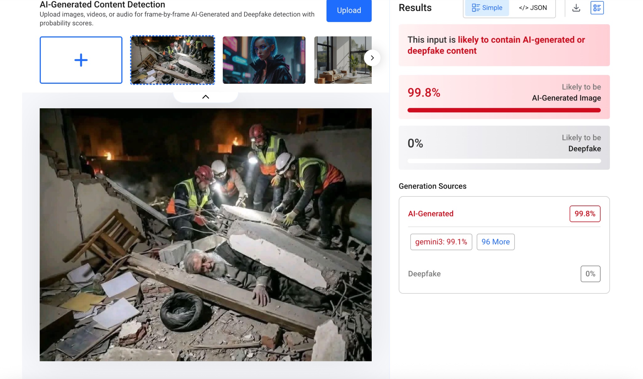 “Hive Moderation” Süni İntellekt aşkarlama alətinə görə, görüntünün 99,8%-i süni intellektlə hazırlanıb.