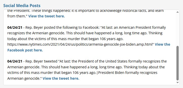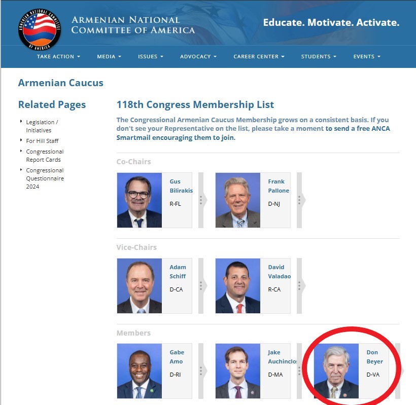 Təşkilatın saytında ermənipərəst konqresmenlərin fəaliyyətini qiymətləndirən sorğu şablonunda 95% suallara “müsbət” cavab verən azsaylı konqresmenlərdəndir.