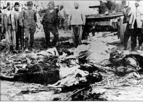 Of course, the most extensive array of falsifications concerns the so-called Armenian genocide of 1915. Due to the unverifiability of the events in the Ottoman Empire declared by the Armenian side as “genocide,” various photos are widely used for the purpose of falsification. In this regard, let’s turn to the book “Long-suffering Armenia: Myths and Reality” by Georgian historian Guram Markhulia and Azerbaijani political scientist Shabnam Nuriyeva, published in Baku in 2011. The work contains many interesting facts that expose the “genocide” and methods of Armenian propaganda. Let’s take, for example, a photo posted on the website of the Armenian Genocide Museum and Institute.