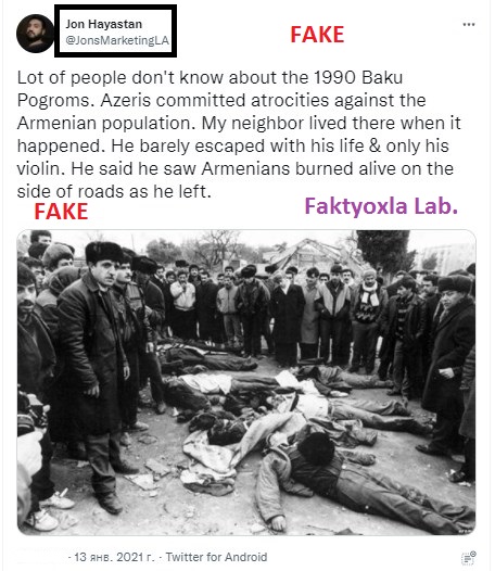 Faktyoxla Lab. has tried to clarify these events, which Armenian users call “Baku pogroms” and checked the authenticity of the photos.