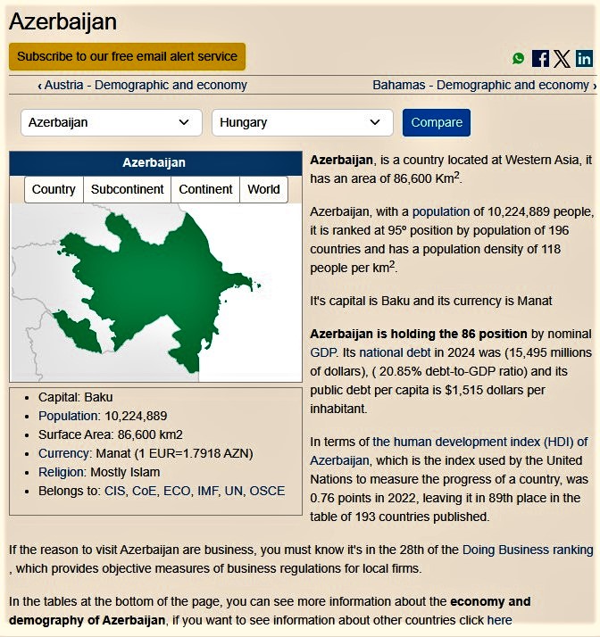 Each of these countries lags behind Azerbaijan in terms of GDP, average monthly wages, average and minimum pensions, per capita national income, external debt, per capita social and healthcare expenditures, benefits and allowances, per capita education spending, and other indicators. This can be verified by accessing the World Bank (WB) database, selecting any country, and cross-checking using real figures and indicators. For example, the database provides comprehensive and detailed information on Azerbaijan’s socio-economic development indicators.