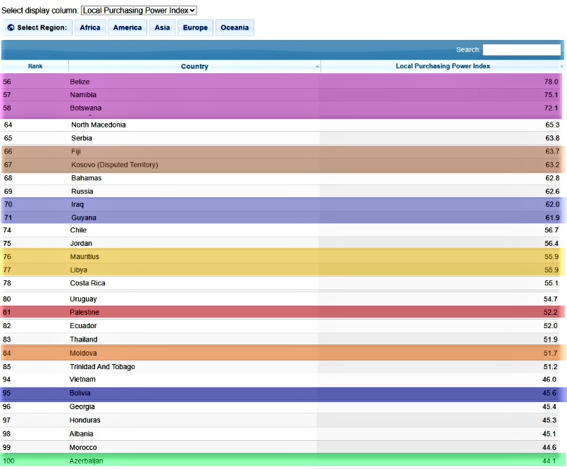 Similarly, in Numbeo’s Cost of Living Index sub-index, the rankings and classifications of countries appear entirely misleading. For instance, among the top 50 countries in this sub-index are island and peninsula nations such as Trinidad and Tobago, Puerto Rico, Papua New Guinea, and the Isle of Man, many of which rely heavily on aid and subsidies from international financial organizations.